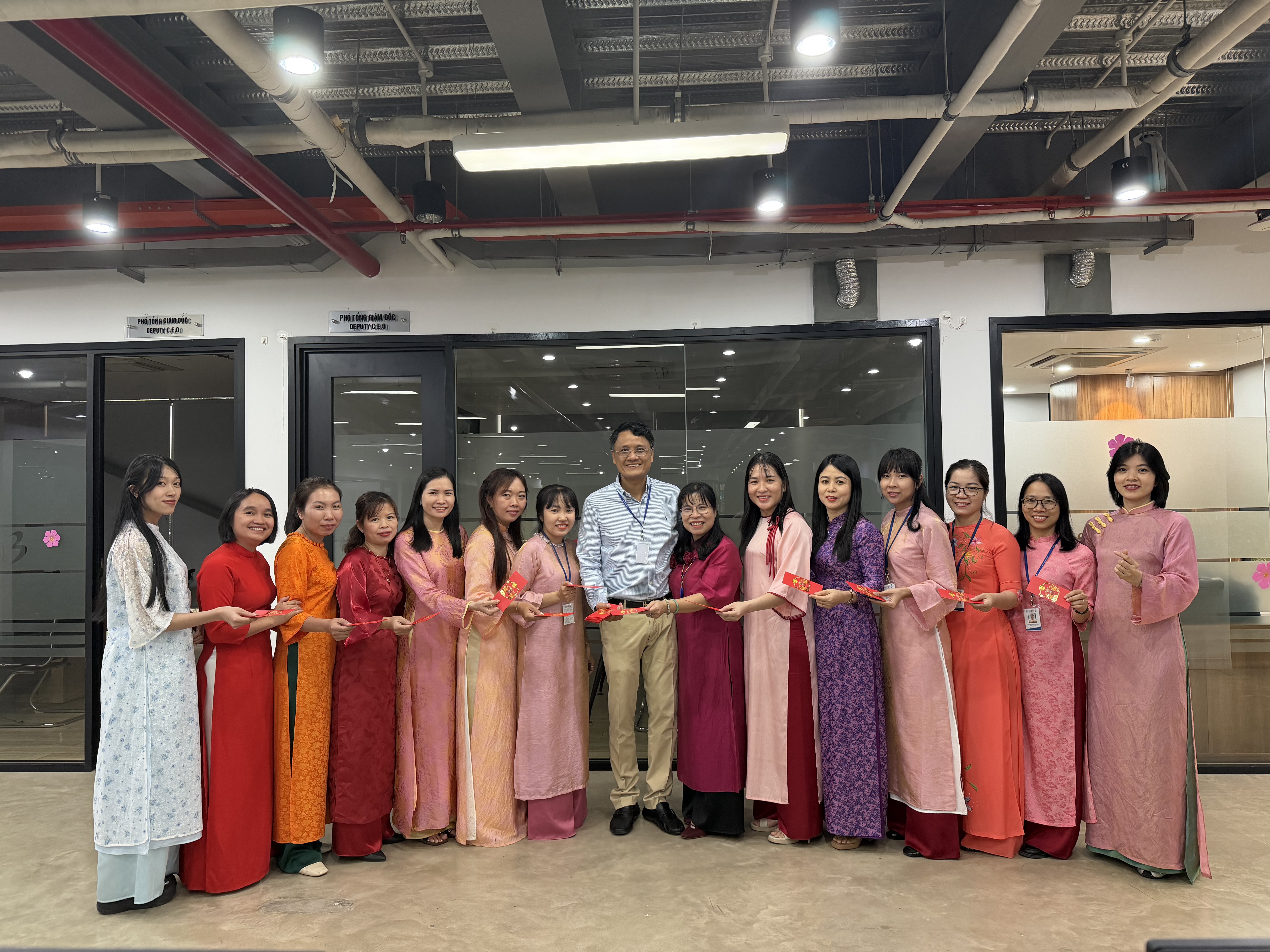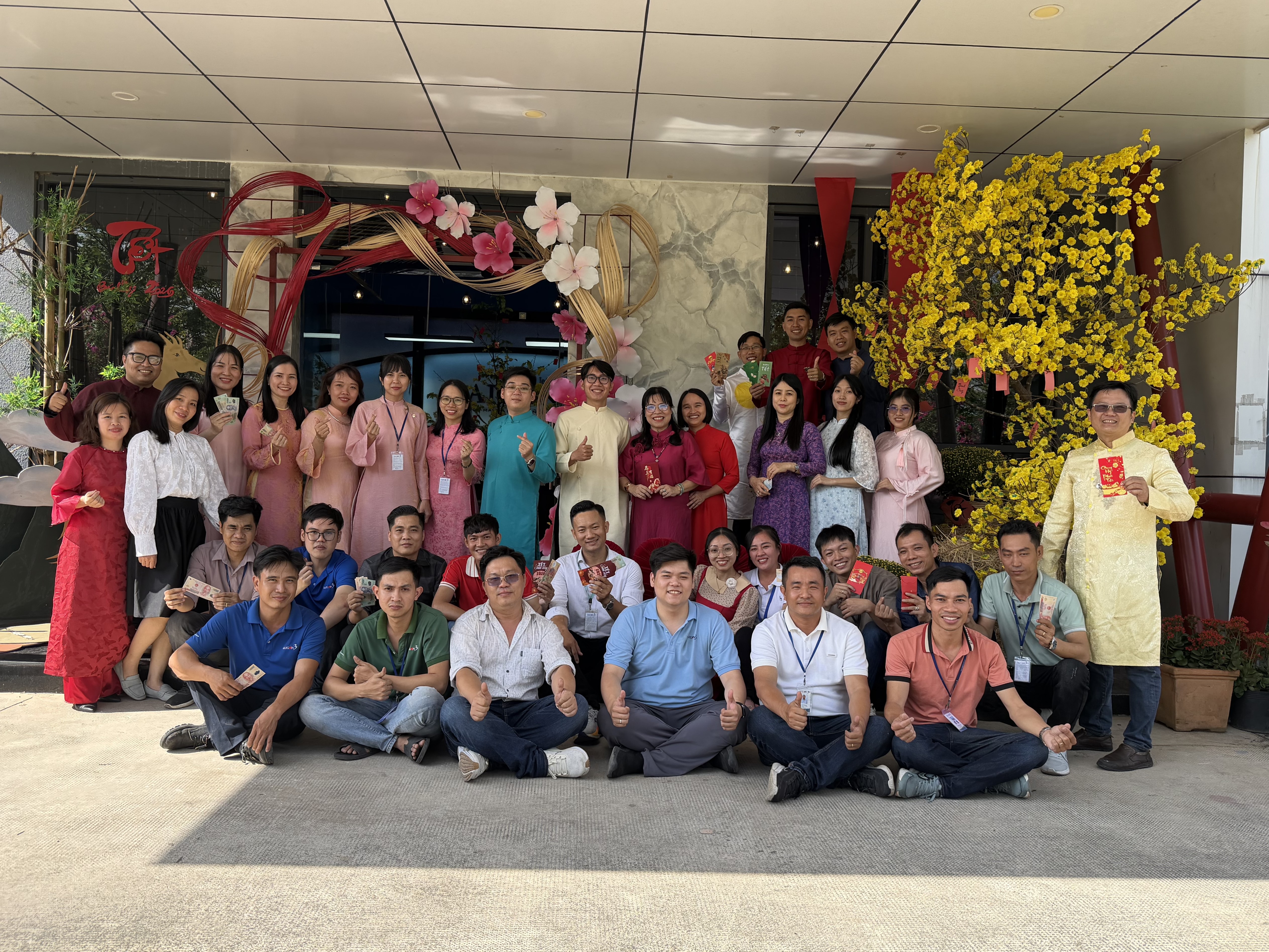Tại khu vực văn phòng, tập thể nhân sự diện trang phục truyền thống đầu năm, cùng nhau gửi những lời chúc tốt đẹp và lưu lại những khoảnh khắc tập thể ý nghĩa. Nghi thức lì xì đầu năm được tổ chức trang trọng, thể hiện sự quan tâm của công ty đối với đời sống tinh thần của người lao động.